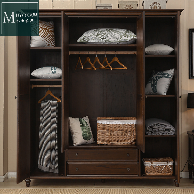 木鱼家具纯原木美式复古风全实木衣柜四门4门大衣柜衣橱卧室婚房