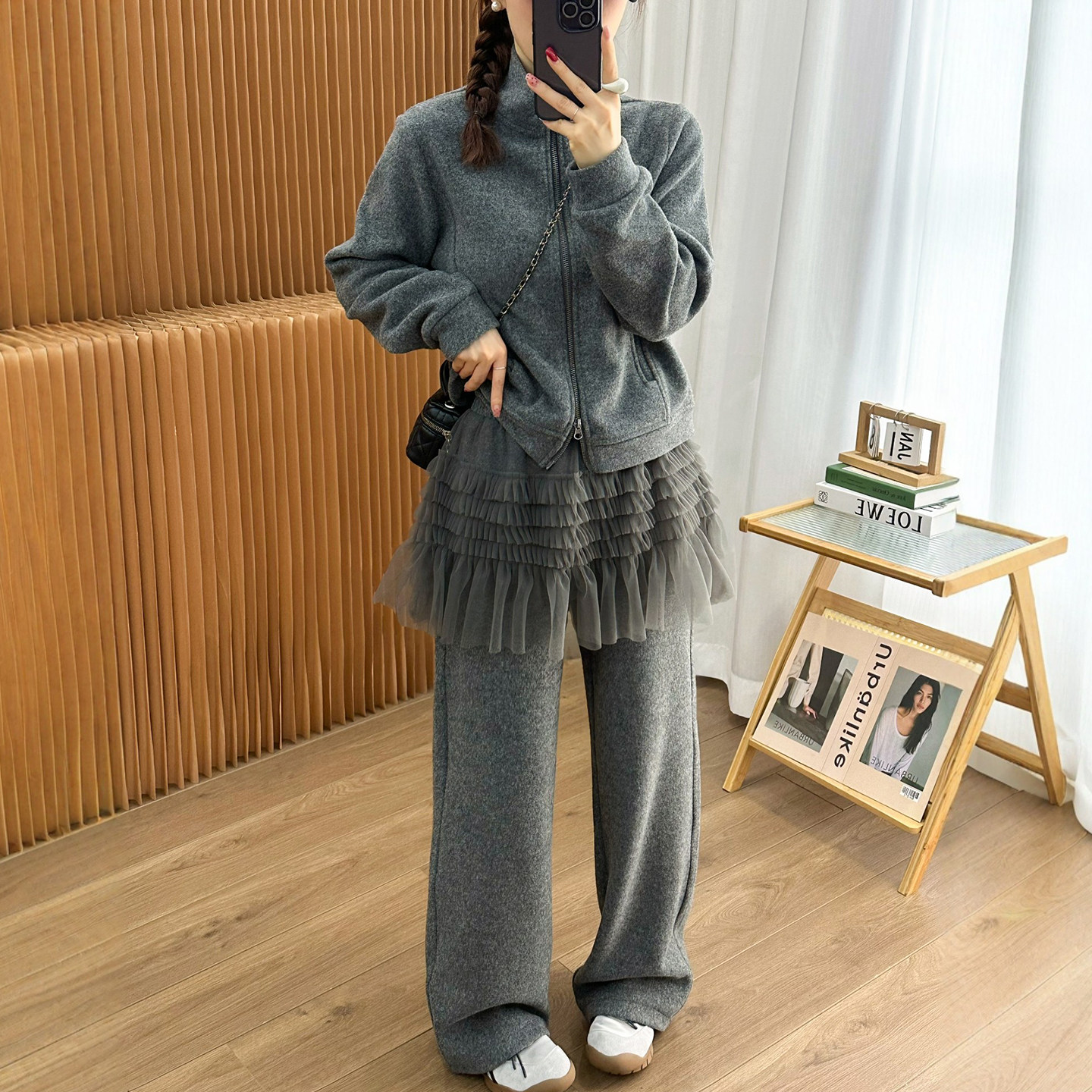 爱情魔鬼鱼 时尚套装女2025冬季新款开衫双拉链外套阔腿裤两件套