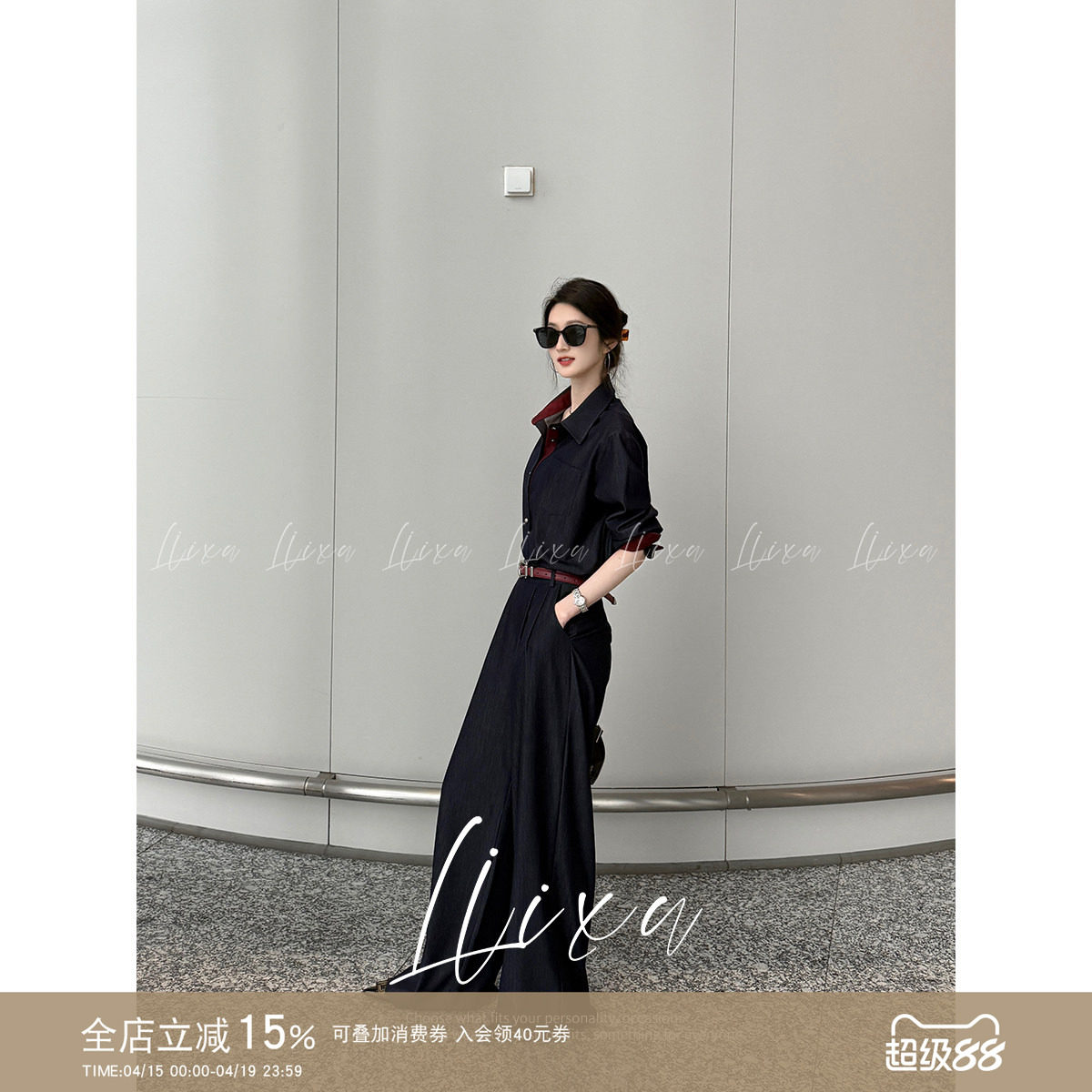 Liixu 春季新款休闲松弛感套装女撞色仿牛仔衬衫阔腿裤显瘦两件套