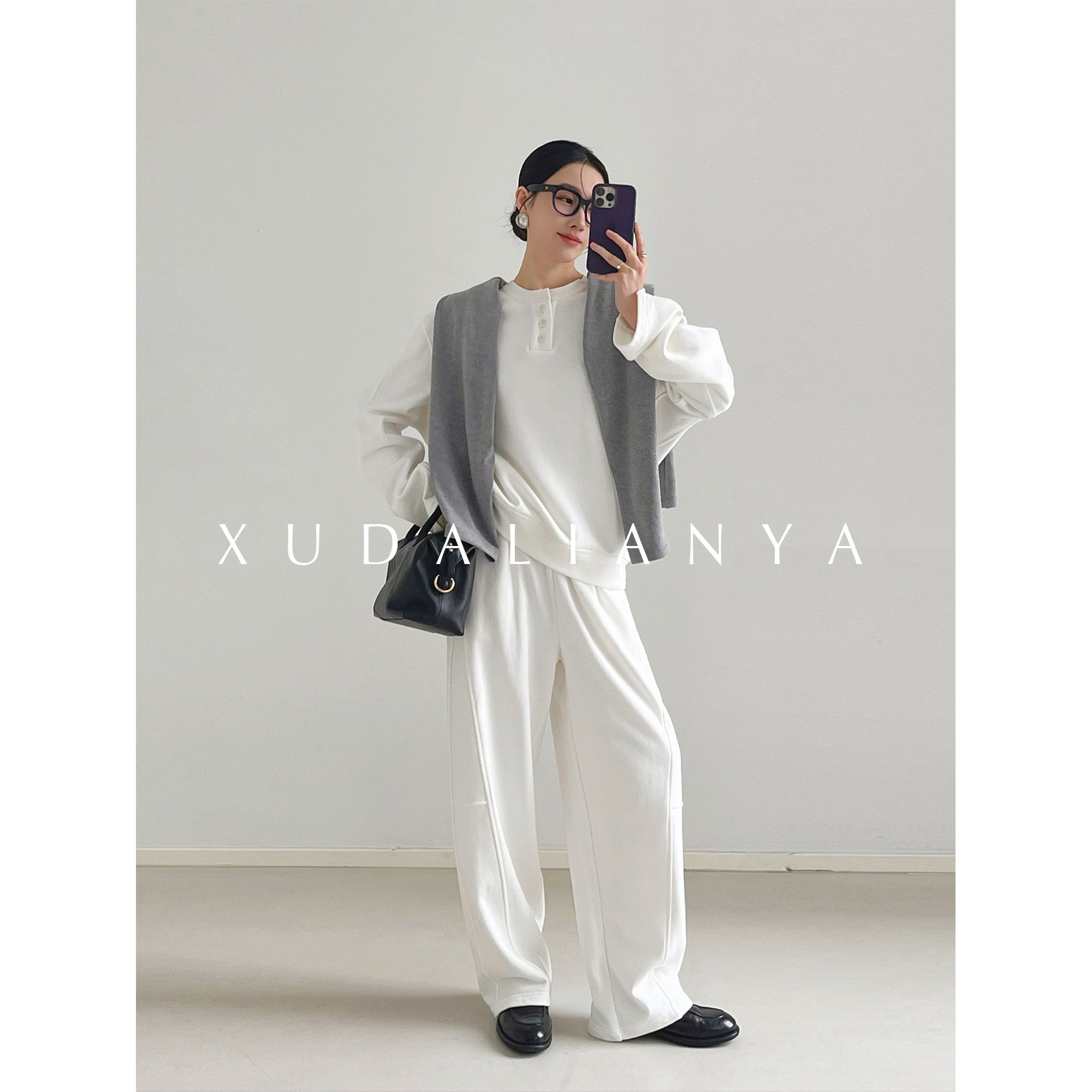 徐大脸吖定制 早春松弛感套装半纽扣卫衣阔腿裤运动休闲两件套女