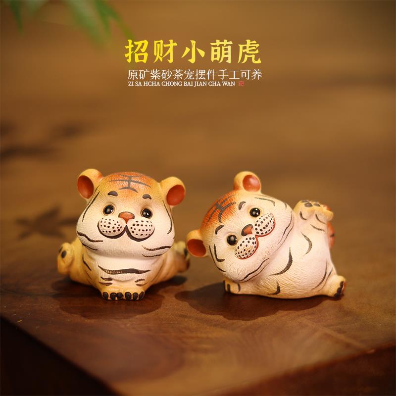 亦合小老虎紫砂茶宠精品可养手工招财可爱生肖小萌虎茶桌摆件茶玩