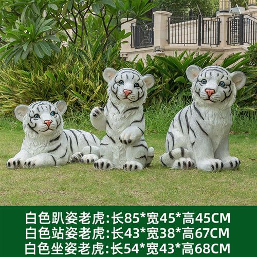 户外园林仿真老虎玻璃钢雕塑公园景区动物园模型景观装饰白虎摆件