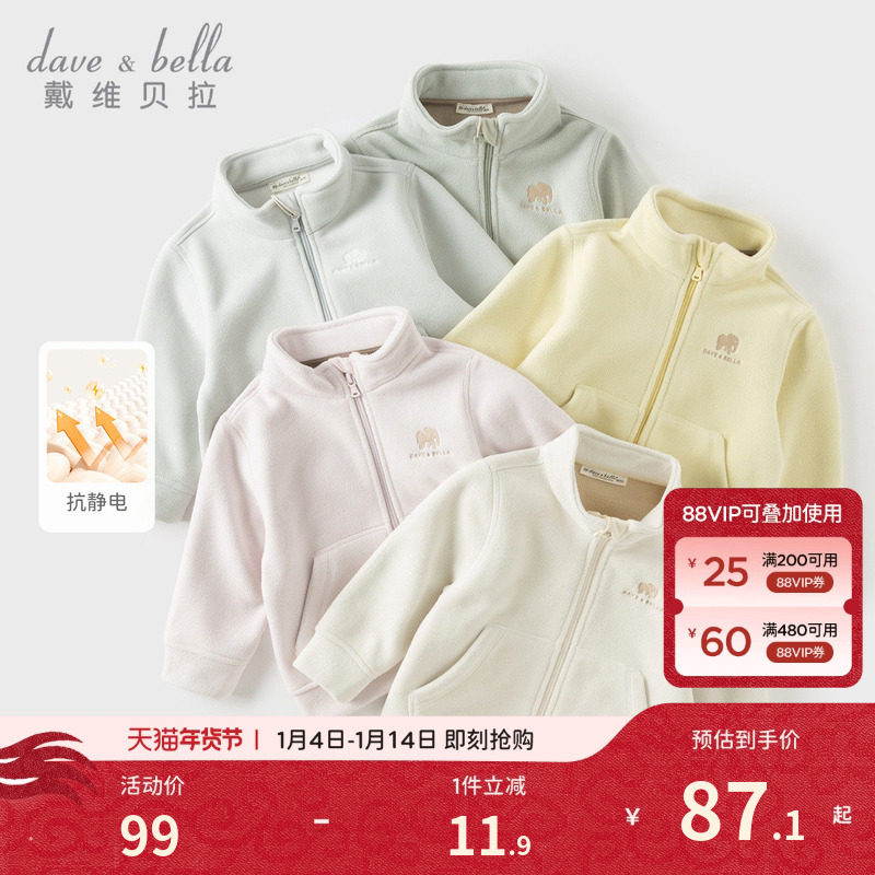 戴维贝拉儿童摇粒绒外套冬装新款男童女童抗静电内胆宝宝A类上衣