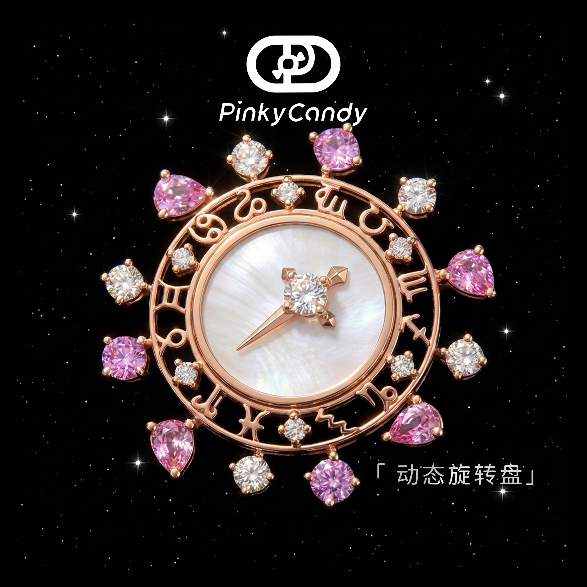 Fate星座许愿盘 | 18K金天然钻石粉蓝宝石 | 项链手链多用旋转式