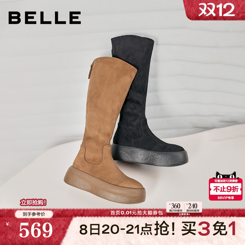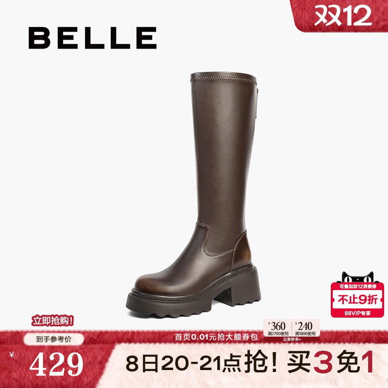 百丽女靴子英伦风骑士靴冬季新款增厚底长筒靴长靴D4H1DDG4