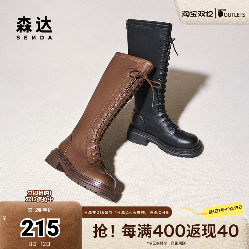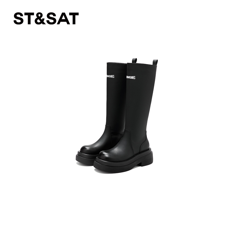 星期六长筒靴女2025冬季新款女靴女款粗跟高筒超火靴子长靴骑士靴