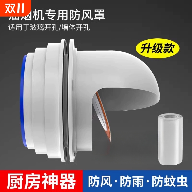 穿玻璃孔窗户厨房抽油烟机止回阀排烟管外墙罩防雨帽排烟口防风帽