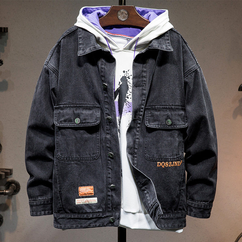 复古牛仔外套男生秋冬季新款青少年加棉加厚学生宽松渐变夹克男装