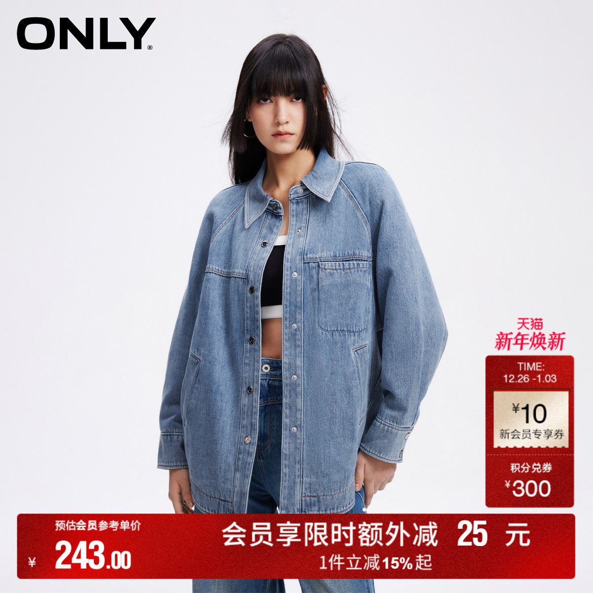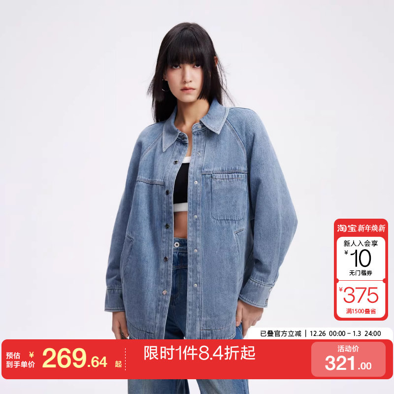 绫致ONLY2024秋冬新款休闲百搭翻领宽松保暖加棉牛仔外套女潮