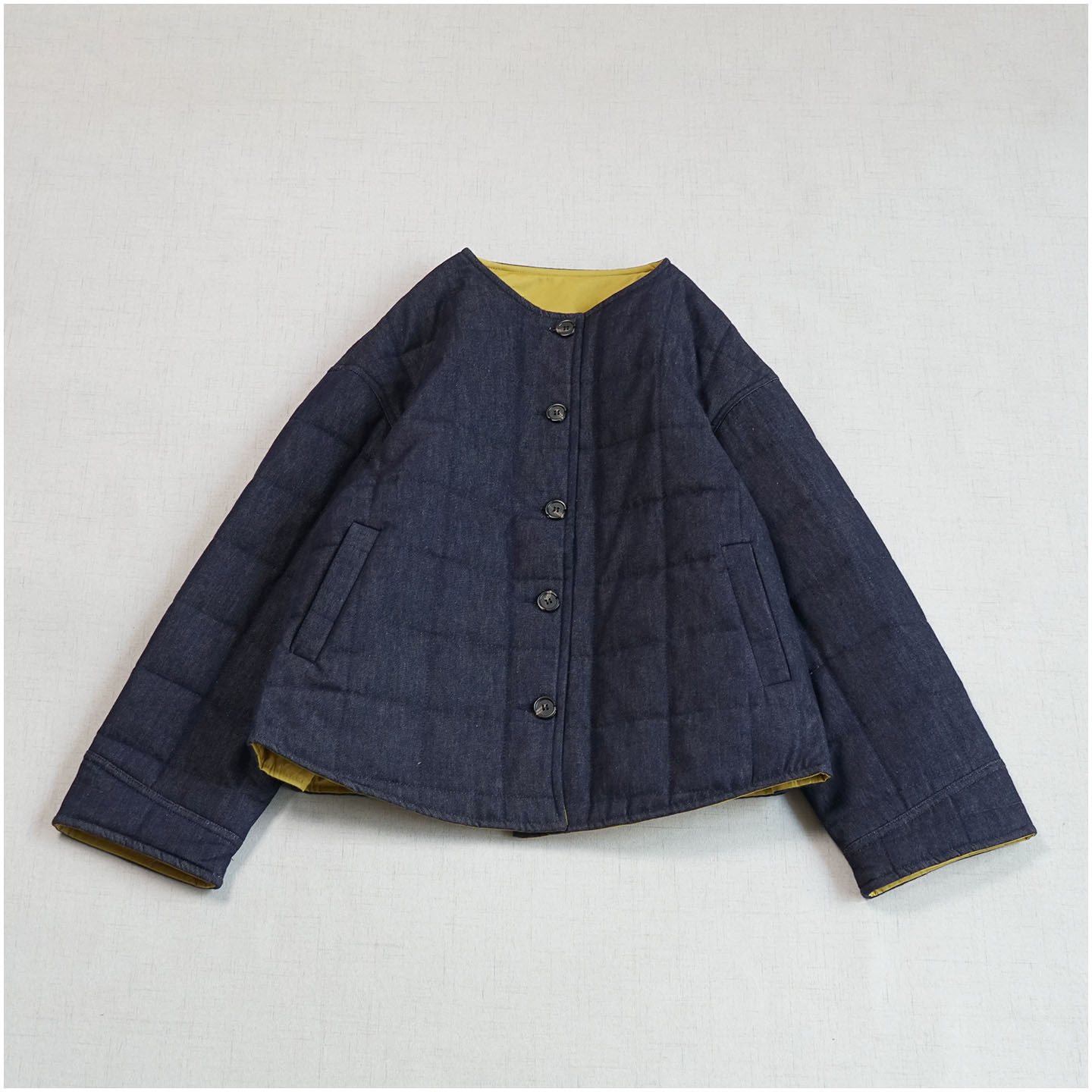 日系复古冬季保暖圆领长袖棉服 简约宽松百搭加棉牛仔外套棉衣女
