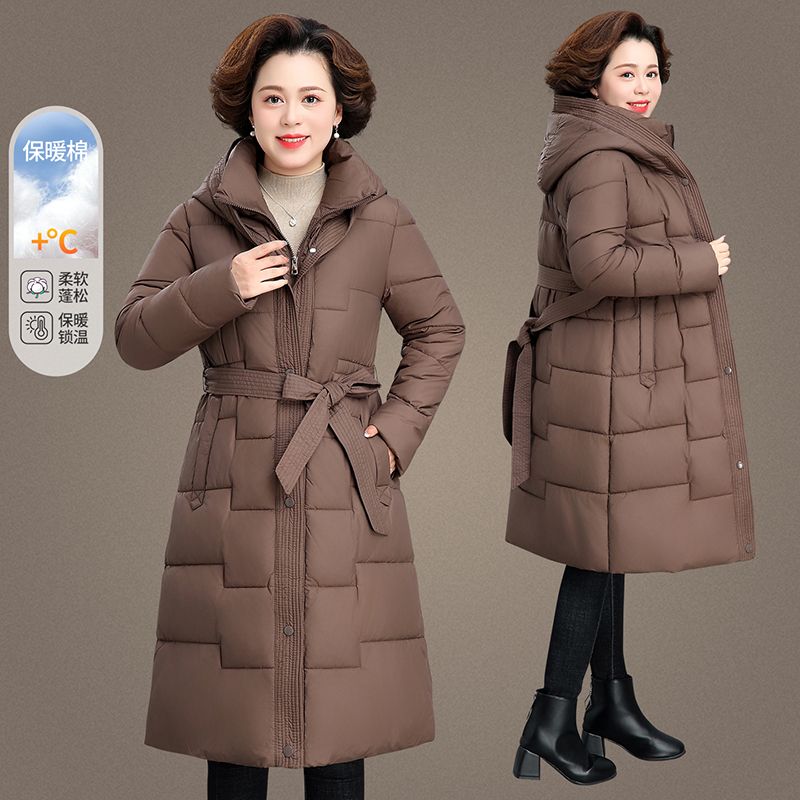 50岁妈妈冬装羽绒棉服中长款中老年冬季外套加绒加厚中年女士棉袄