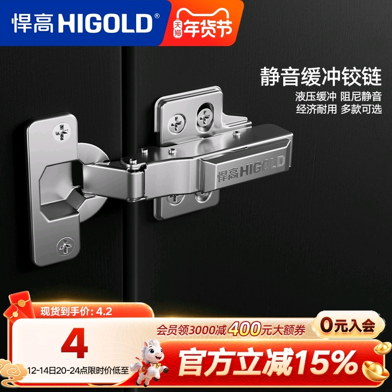 悍高柜门铰链304不锈钢阻尼液压缓冲五金配件大弯衣柜橱柜门合页