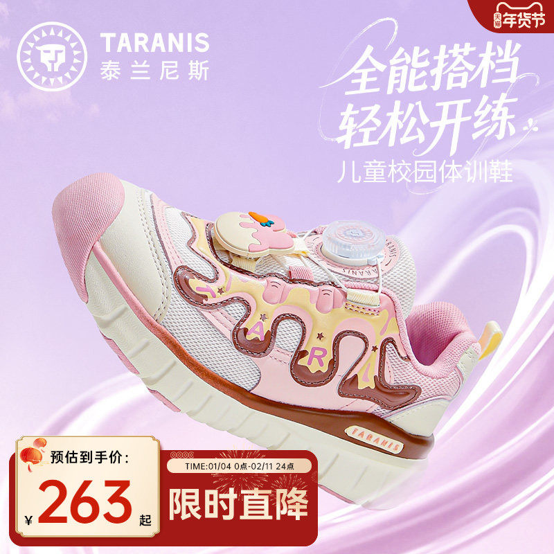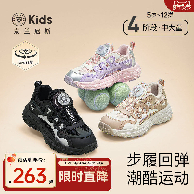 泰兰尼斯kids春款中大童运动鞋女童校园体训鞋男童旋钮跑步鞋
