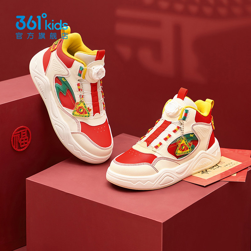 新年红色361°童鞋儿童板鞋高帮男童鞋运动休闲鞋2026春款女童鞋