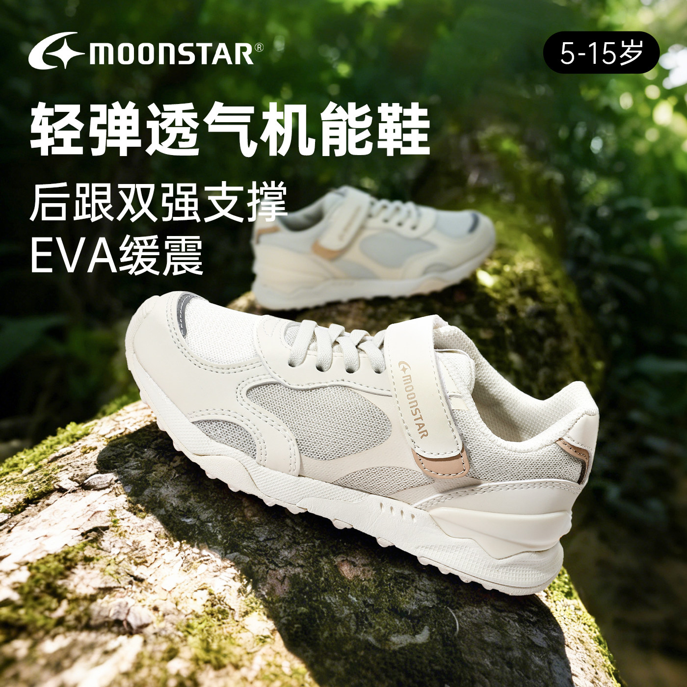 MOONSTAR月星春款3-12岁轻量缓震机能运动鞋男女透气魔术贴休闲鞋