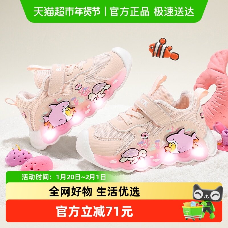 bduck小黄鸭女童鞋子春款儿童运动鞋2025新款男宝闪灯发光鞋轻便