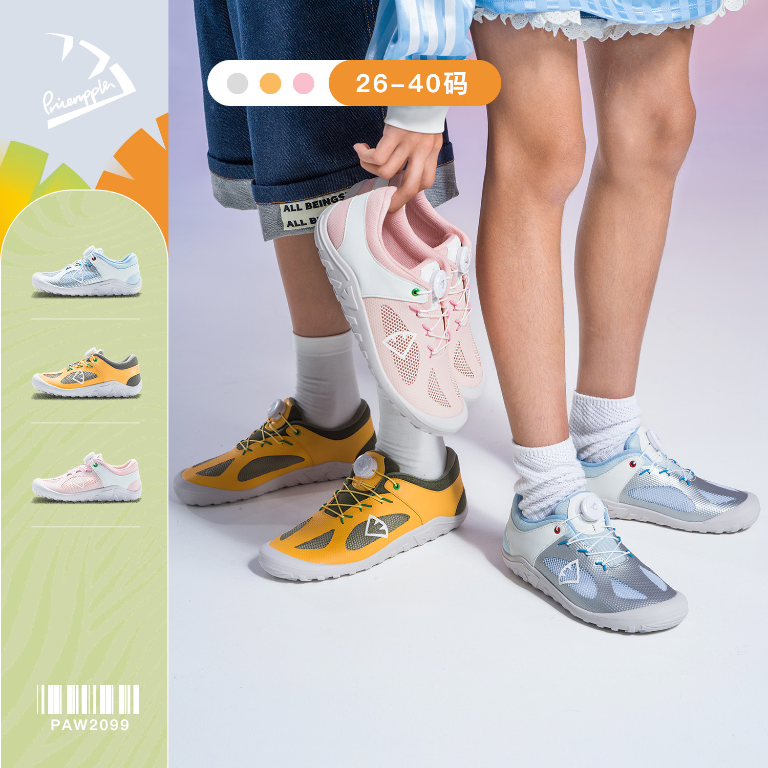 pineapple菠萝2026春款儿童运动赤足鞋透气防滑男女童校园跑步鞋