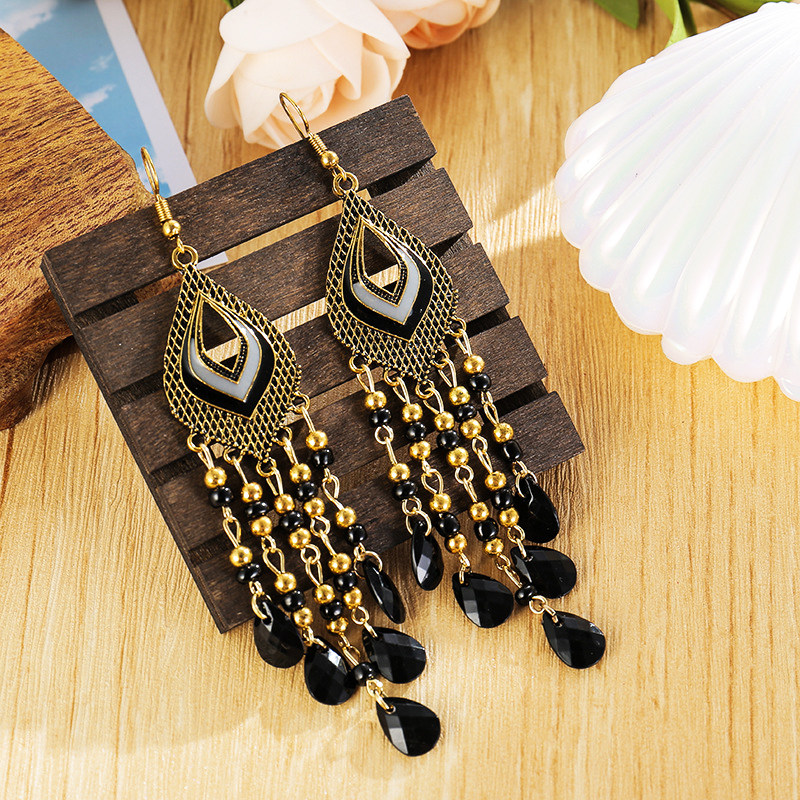 波西米亚长款流苏耳环女复古气质黑色耳坠沙滩度假配夏天长裙耳饰