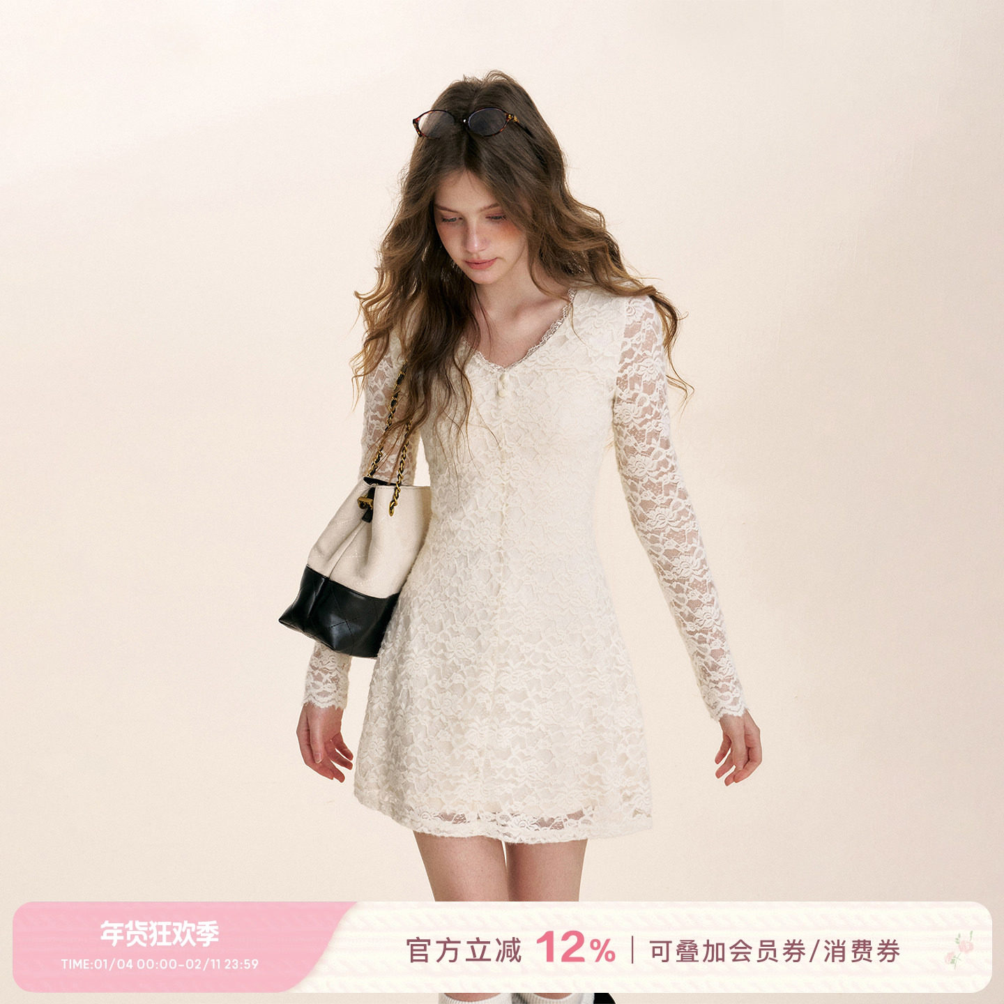 【N·COU】26春新款【窈窕淑女】蕾丝刺绣修身打底连衣裙DY61765
