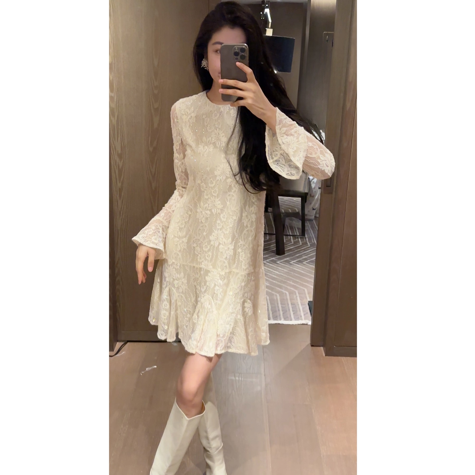 11026撤柜ATU蕾丝连衣裙2025修身打底女装圆领长袖裙子长裙