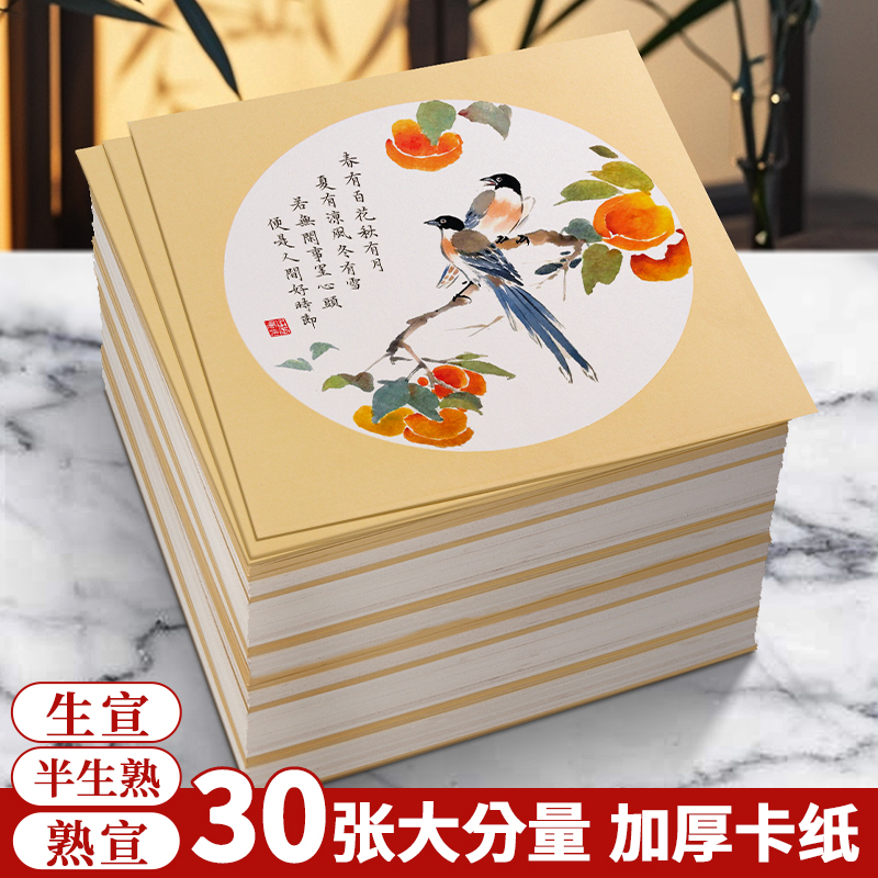 加厚宣纸卡纸国画书法纸扇面空白熟宣纸工笔画宣纸书法专用纸半生熟水彩画软卡圆形生宣镜片卡纸儿童水彩画