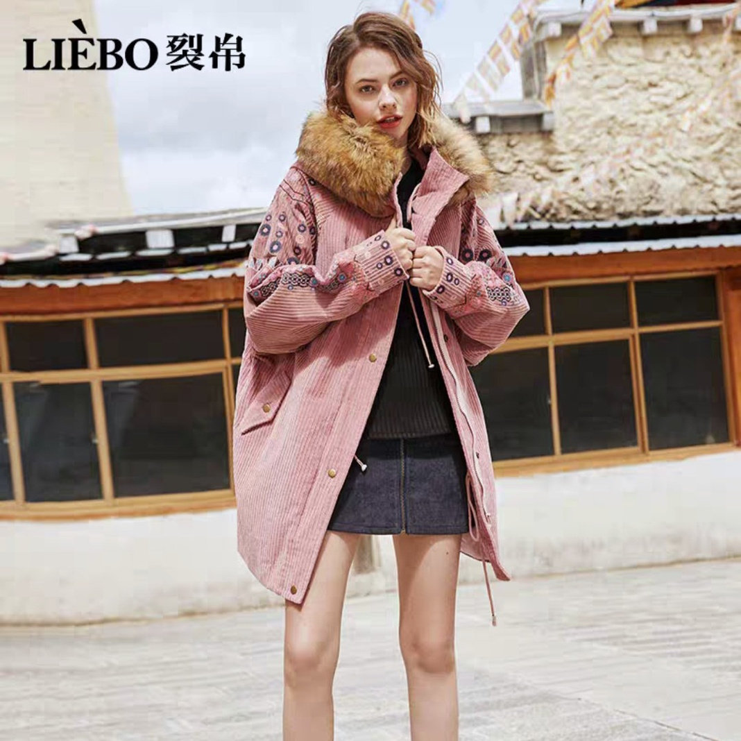 裂帛新衣记冬季新款翻驳领连肩长袖毛呢外套刺绣长大衣女68170120