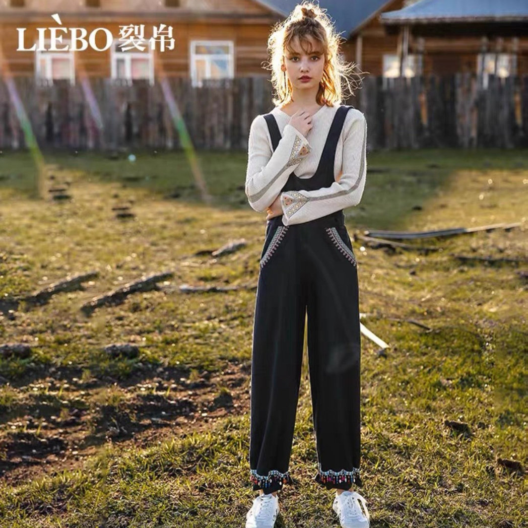 雪裂帛域新品宽松民族风刺绣长袖毛衣连衣裙女秋冬高领套头针织衫