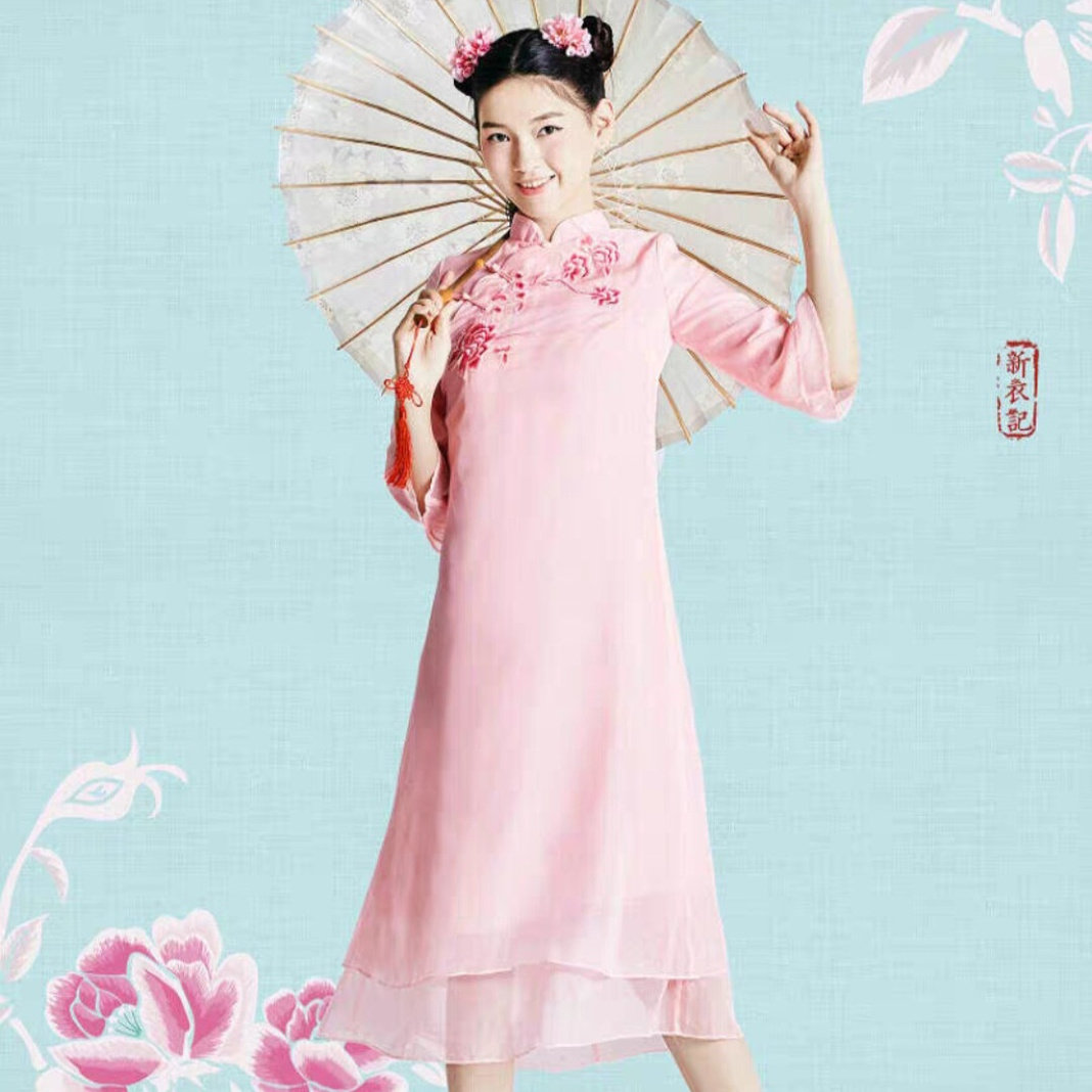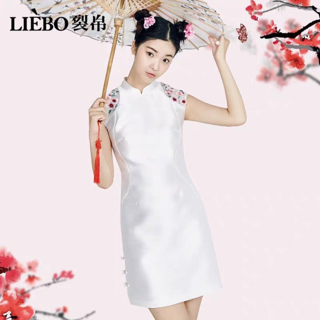 裂帛新衣记中式立领短袖旗袍刺绣连衣裙民族刺绣连衣裙68170196馒