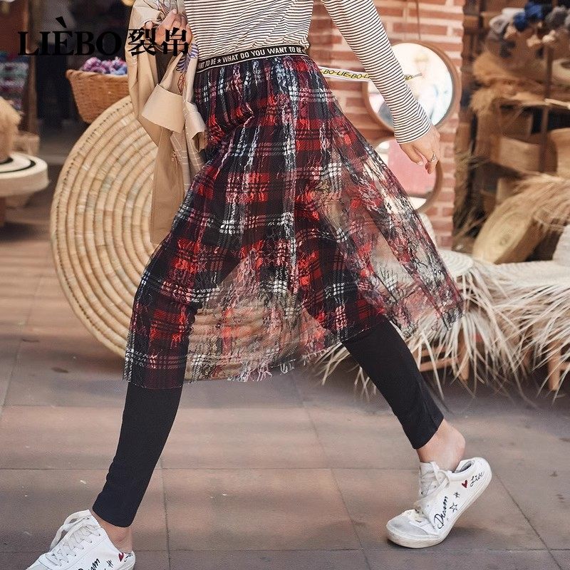 裂帛黑色打底裤女士2020冬季新款紧身弹力外穿显瘦网纱裙裤假两件