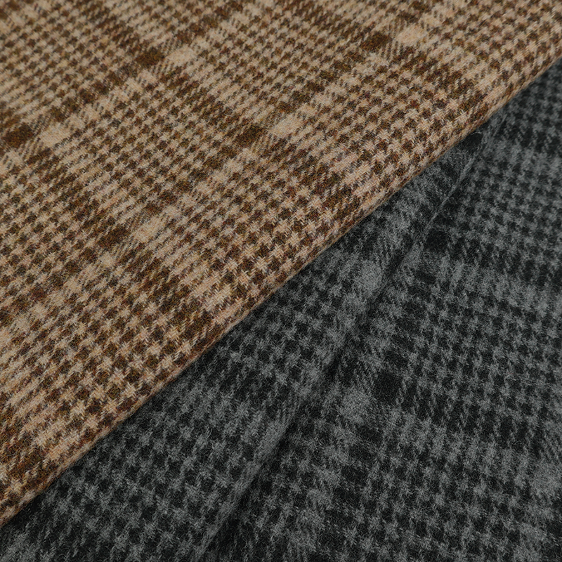 90%羊毛 绿色灰色撞色小格纹双层双面羊毛毛呢大衣外套风衣布料