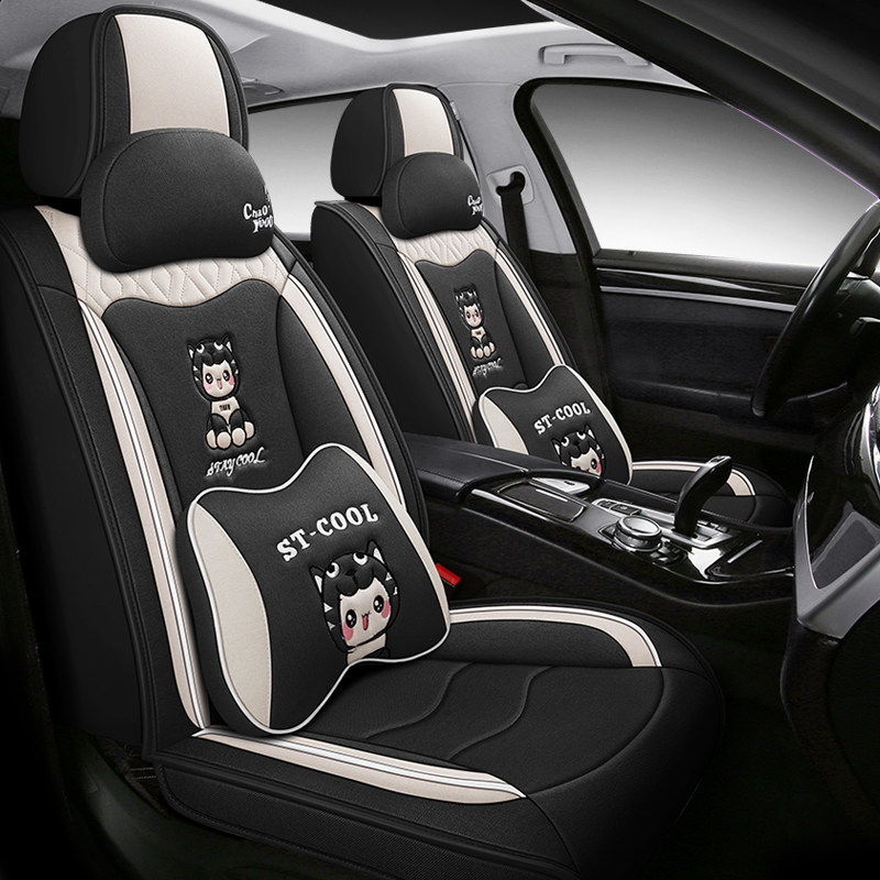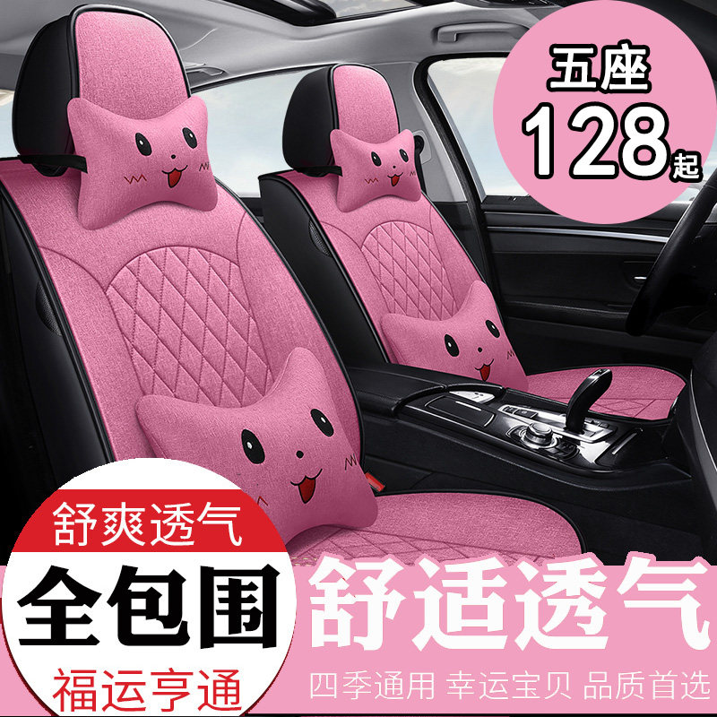 汽车坐垫夏季亚麻座垫北京现代朗动瑞纳IX35卡通可爱男女全包座套