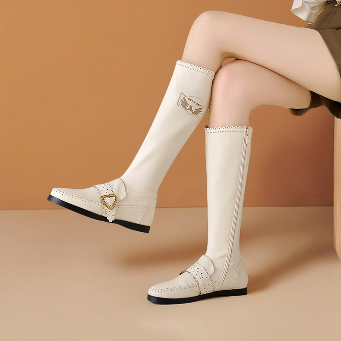 - 真皮长筒靴