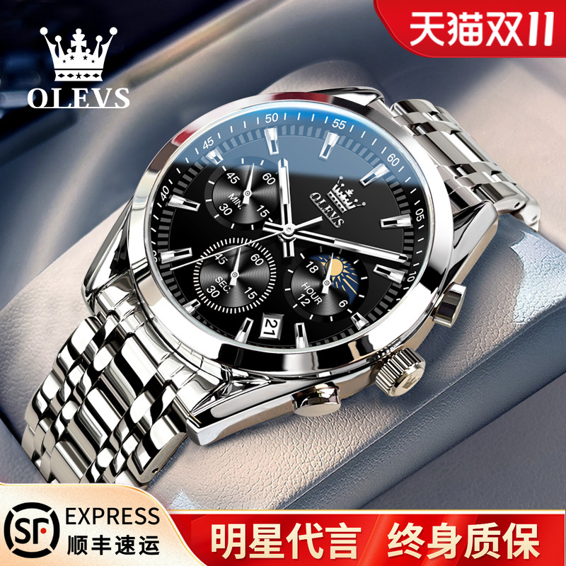 OLEVS欧利时 瑞士轻奢男士手表机械表全自动夜光防水钢带石英表