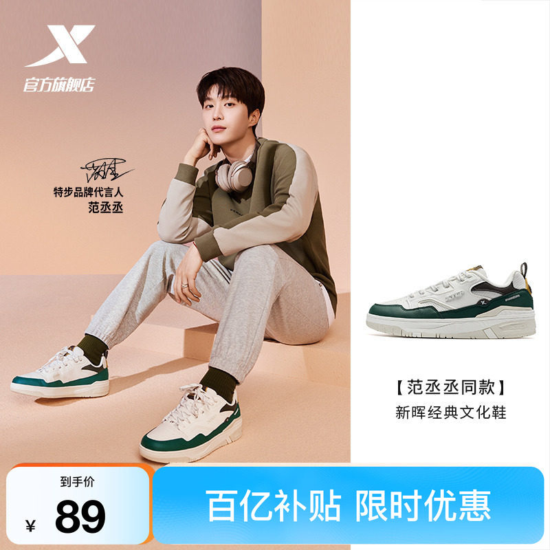 范丞丞同款丨特步新晖板鞋2026夏季男鞋休闲鞋潮流皮面低帮运动鞋