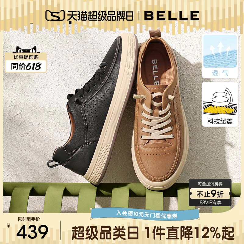 百丽焦糖美式夏季新款透气休闲小白鞋男士真皮运动板鞋A1468BM4