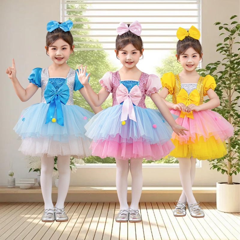 儿童芭蕾舞裙女童蓬蓬纱裙表演服蝴蝶结亮片可爱合唱公主裙演出服