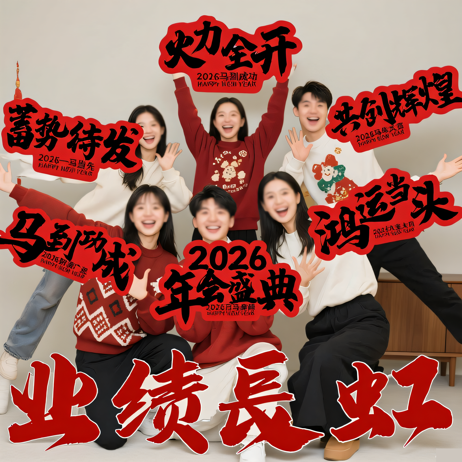 春节团建手举牌氛围装饰布置kt板合影拍照道具2026马年新年会公司