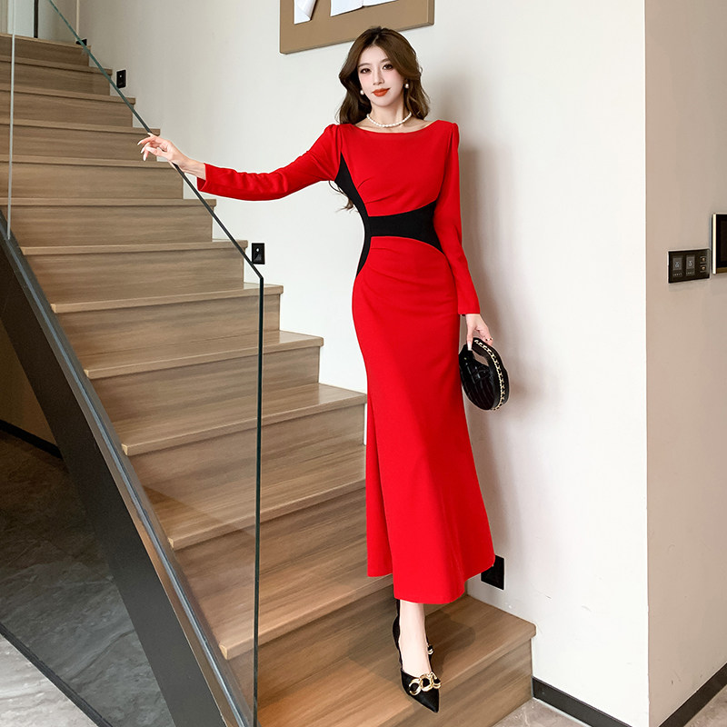 欧洲站气质名媛高端连衣裙女秋冬新款法式高级感气场强大显瘦长裙