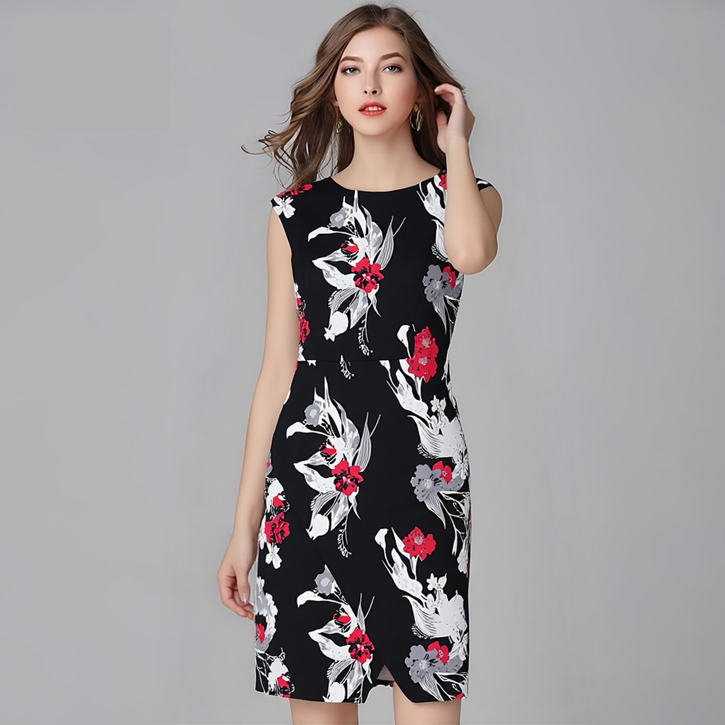 欧洲站黑色无袖背心小黑裙高端职业连衣裙直筒欧货女装夏欧美大码