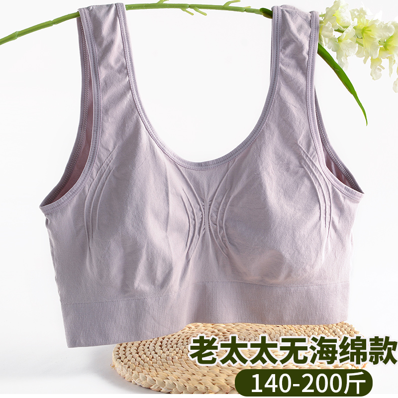 大码老太太文胸单层超薄无胸垫无海绵透气宽松背心式内衣老人胸罩