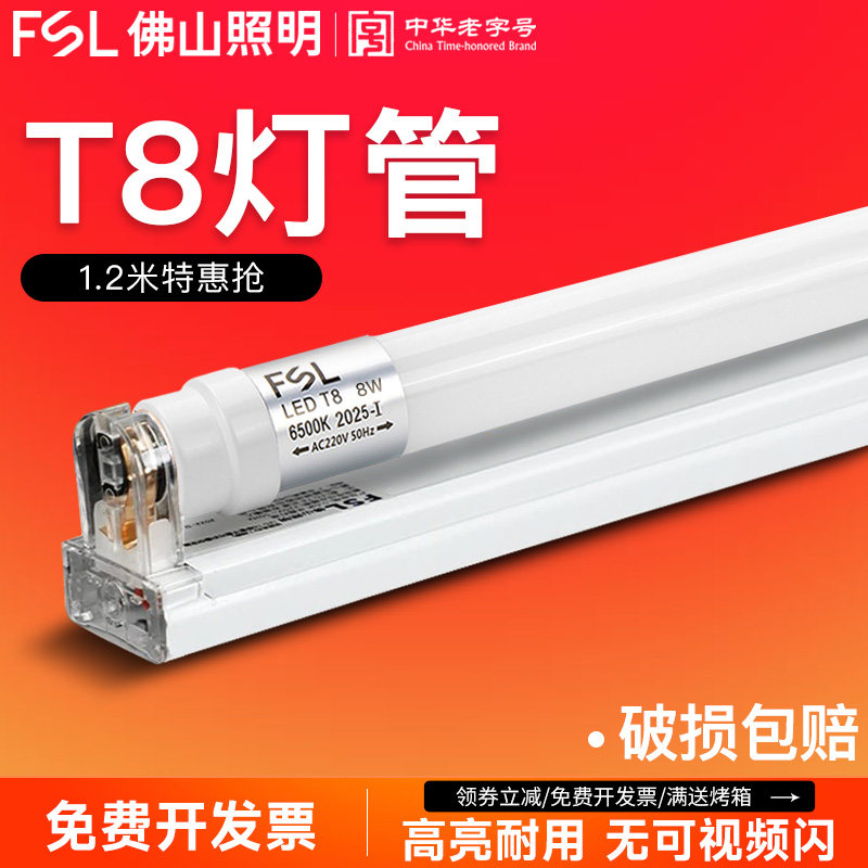 佛山照明T8led灯管日光支架一体化全套家用客厅超亮长条宿舍节能