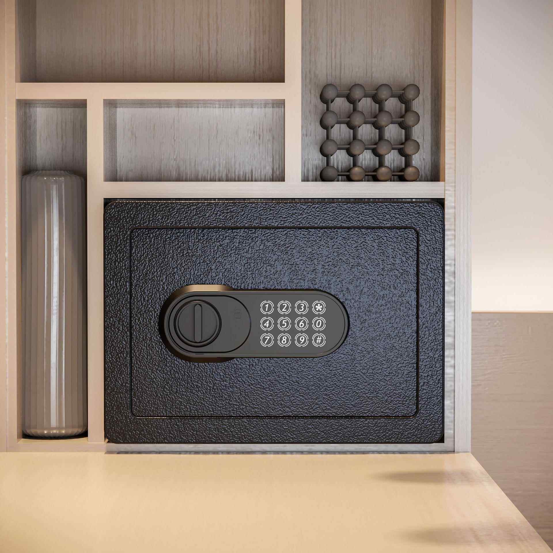 得力92619保险柜家用小型床头柜保险箱防盗防撬入柜入墙保险柜箱家用小保险箱迷你办公室装隐形入墙箱高25cm