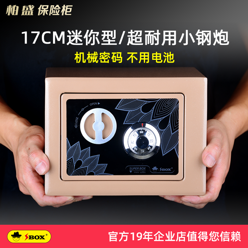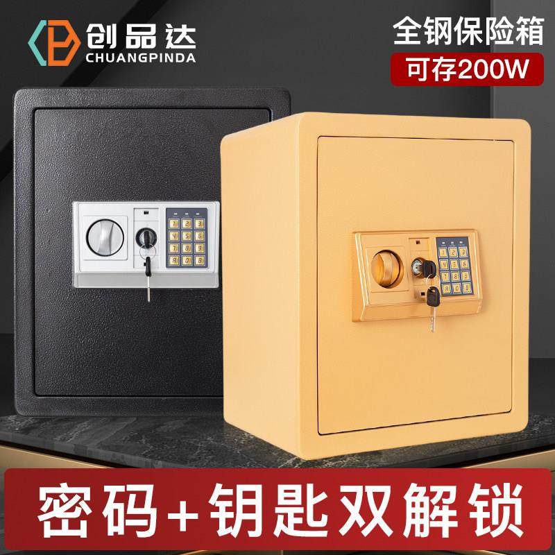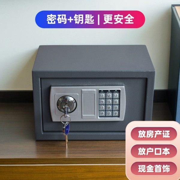20cm纯钢板密码钥匙保险箱小型保险箱迷你入墙保险柜办公防盗报警