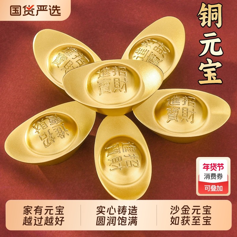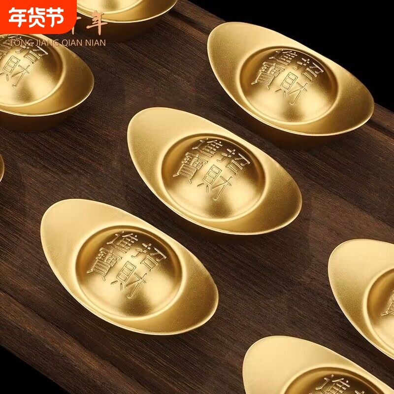 实心沙金元宝金条道具聚财黄铜元宝摆件客厅聚宝盆装饰品开业礼品