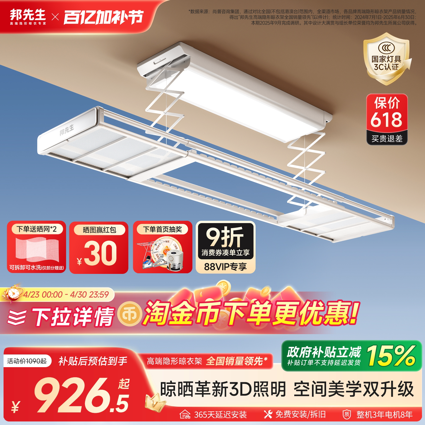 【政府补贴】邦先生智能电动晾衣架升降晒衣架杆神器阳台遥控自动