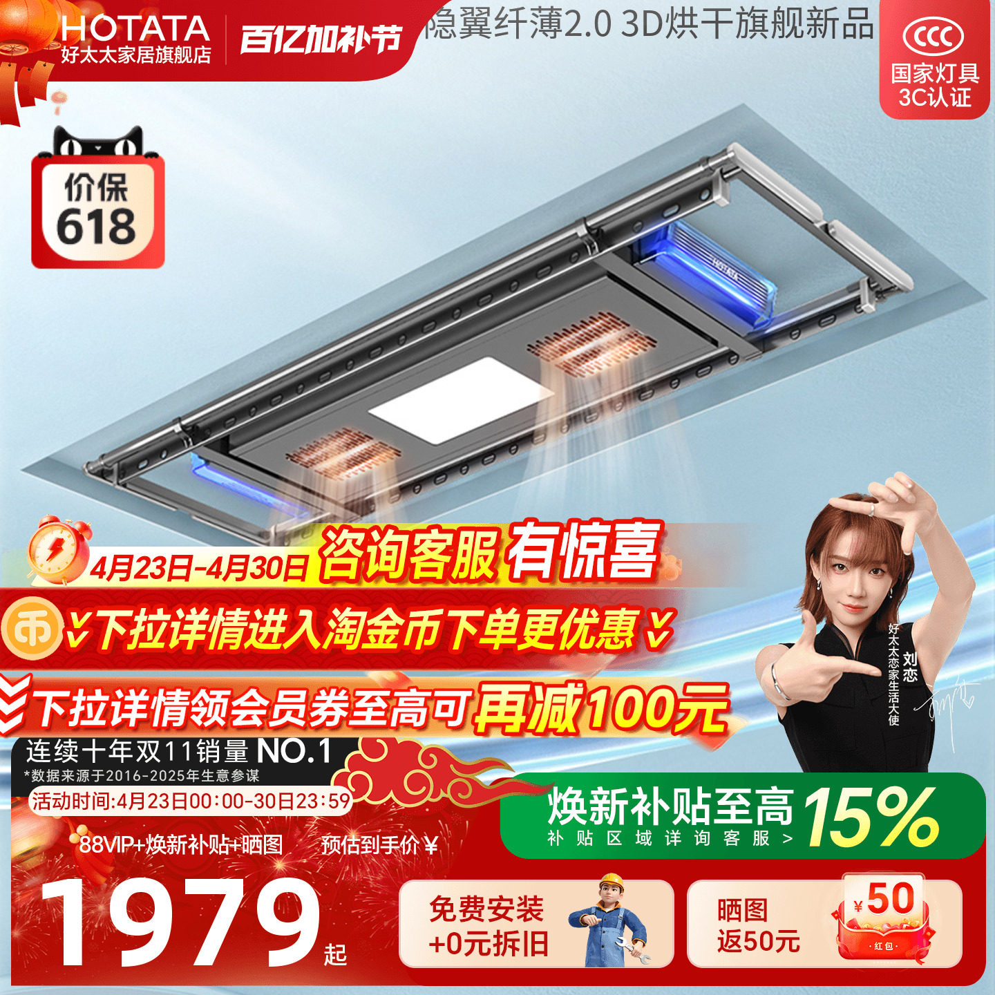 好太太电动晾衣架全自动升降风干烘干智能遥控阳台多功能晒衣被架