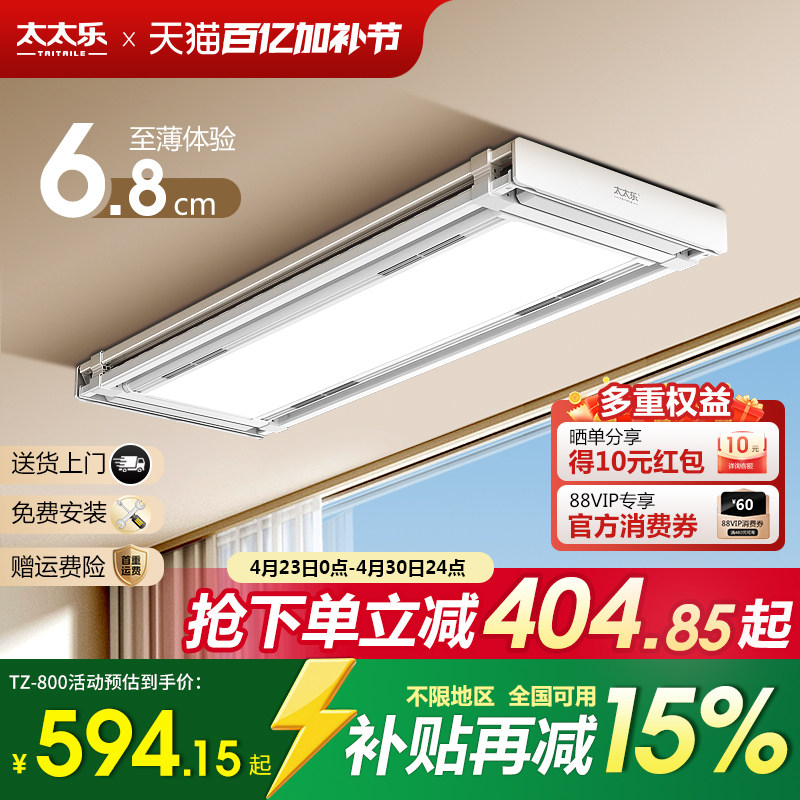 太太乐新款隐形电动晾衣架家用遥控自动升降阳台智能伸缩隐藏晒杆