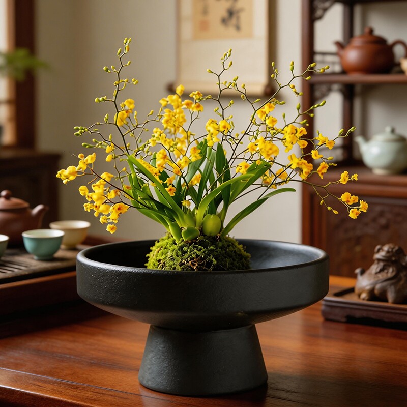 苔藓球托盘花盆陶瓷盆中式亚光简约桌面摆件水培米竹干果盆托国风