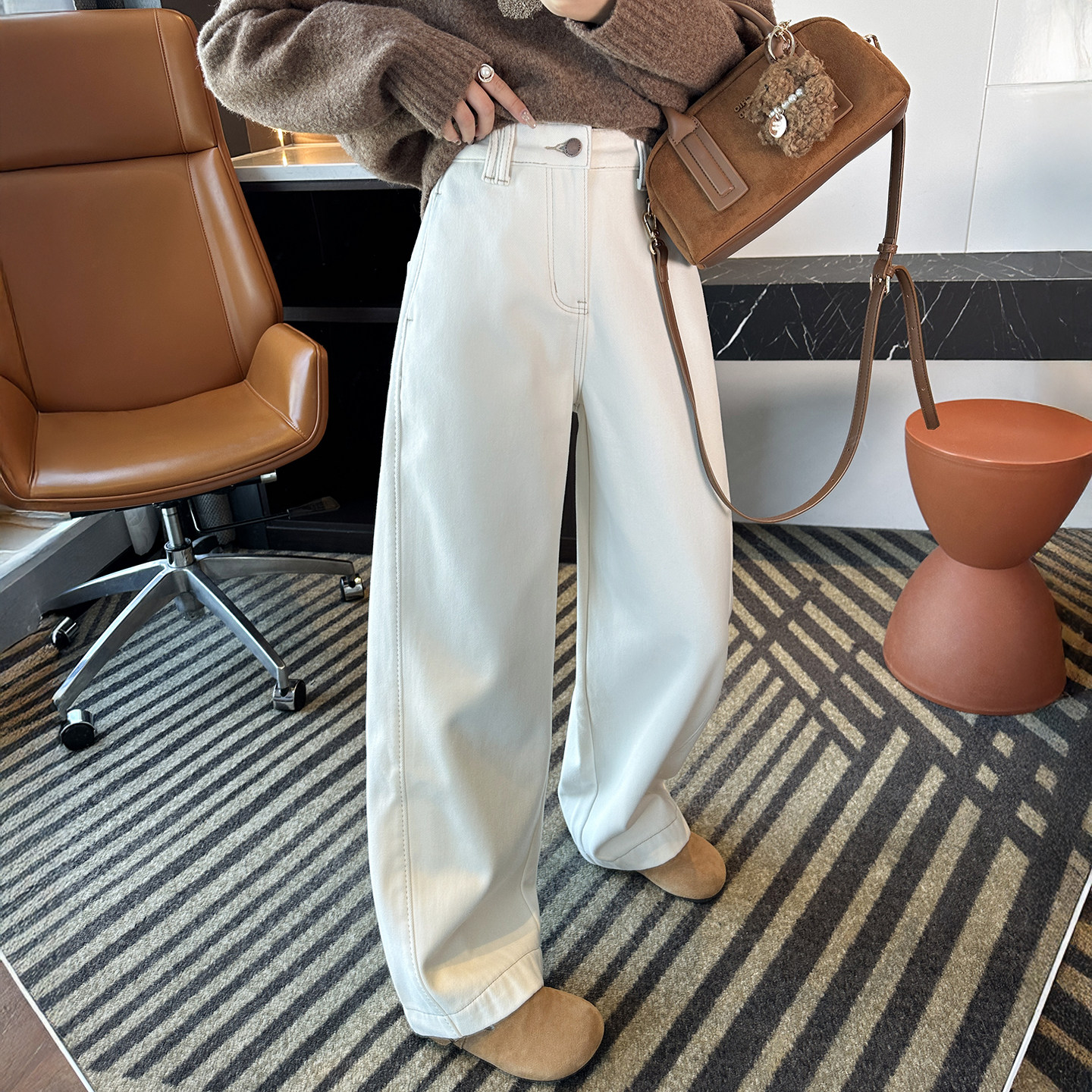 马登白色棉籽壳直筒廓形休闲复古宽松显瘦阔腿牛仔长裤子女士秋冬
