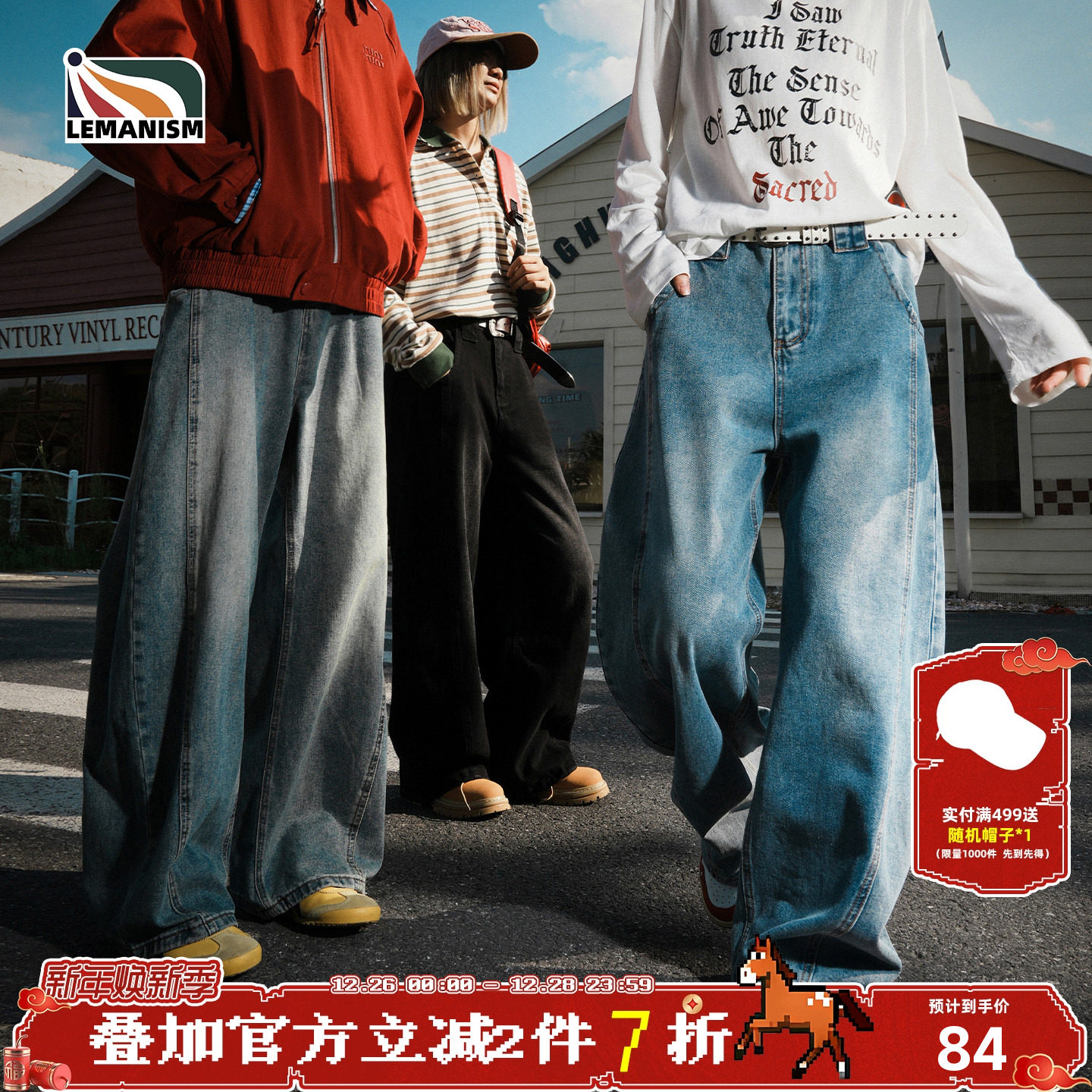 lemanism美式潮流复古拼接牛仔裤男2025秋季情侣款宽松休闲长裤女